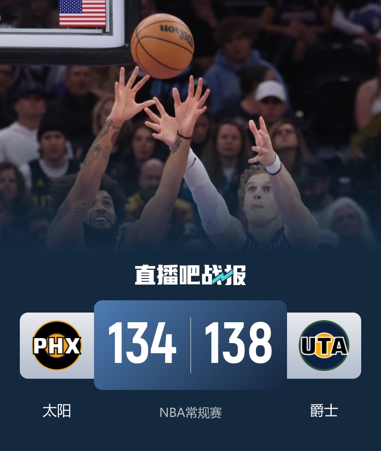 爵士加时力克太阳 马卡生涯新高51+14 布克34+11 狄龙缺阵